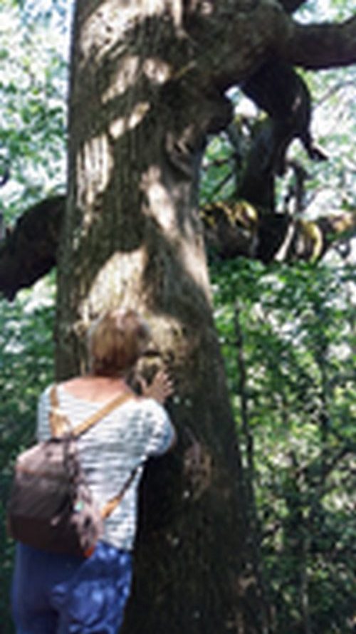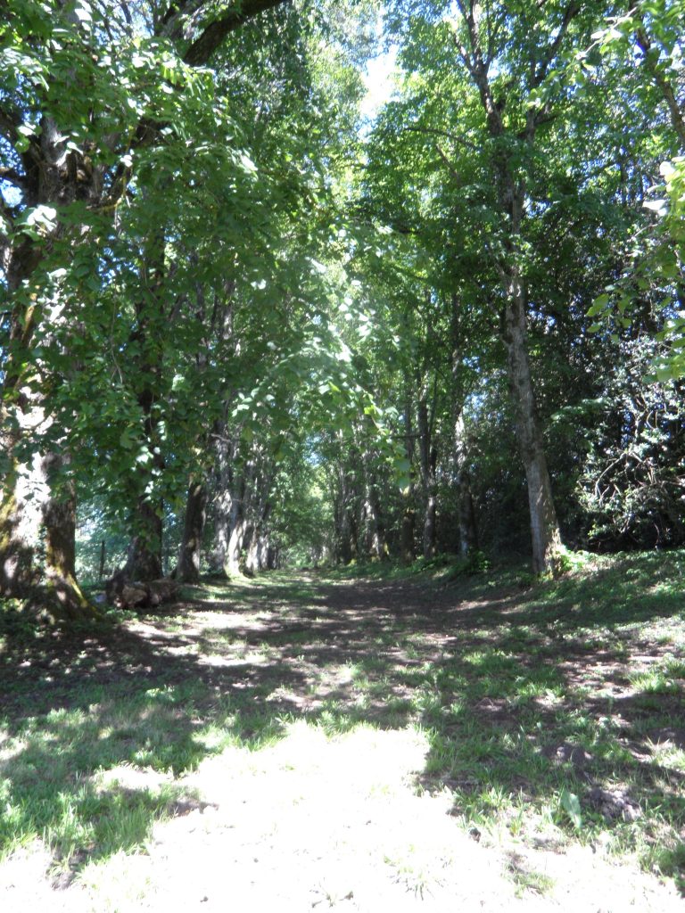 Une allée de tilleuls de 300m nous a conduit au cœur d’une forêt druidique jusqu’à un groupe de trois vieux chênes.