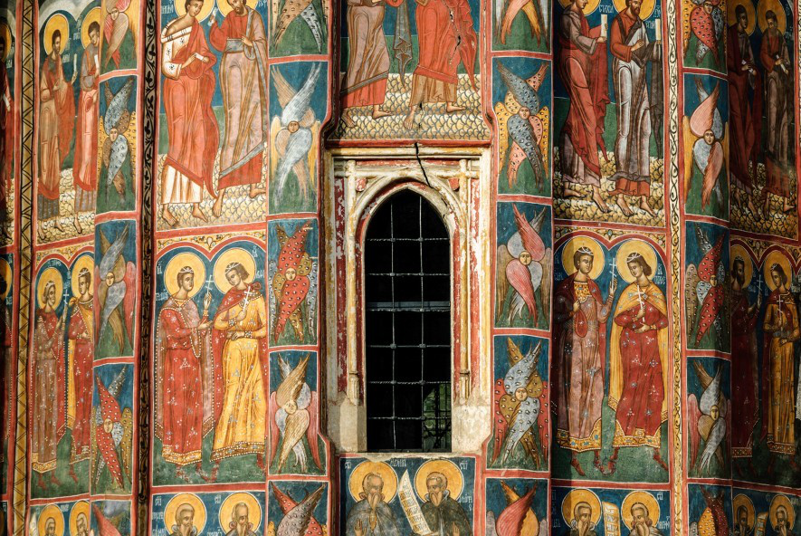 Et quels monastères ! Avec des peintures extérieures, la plupart très bien conservées et classées au Patrimoine de l’Unesco comme celles du Monastère de Voronet. Sur la façade ouest nous découvrons « le jugement dernier ». Des peintures intérieures également magnifiques font dire à certains que c’est la Sixtine de l’Orient. Toutes ces beautés ont été commandées par Étienne Le Grand (règne1457-1504 Prince local) en 1488.